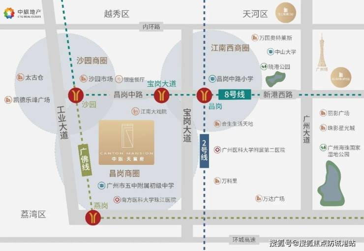 其二,区位优势不可复制。项目地处海珠昌岗中路与宝岗大道交汇处,属于海珠城芯核心地段,周边三大黄金走廊环绕,多年无新增供应用地,区位稀缺性显著。相较于区域内部分位于非核心地段的竞品项目,本项目周边配套更成熟、交通更便捷,居住舒适度与升值潜力更具优势。根据市场调研,海珠西部核心区域的房产保值增值能力显著高于非核心区域,而中旅·天宸府作为城芯稀缺项目,更能抵御市场波动,保障业主资产安全。