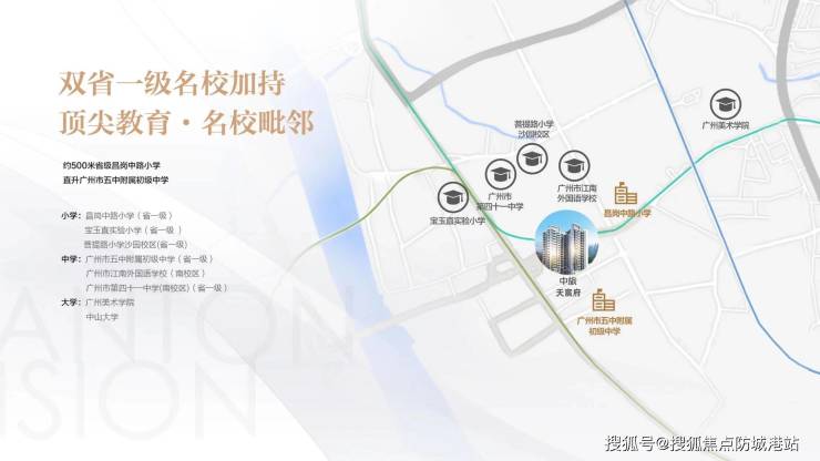 其三,教育配套更具竞争力。项目对口省一级昌岗中路小学,且可直升广州市五中附属初级中学,实现小学至初中的无缝衔接,教育资源优质且稳定。相较于区域内部分教育配套不完善或学区划分不稳定的竞品项目,本项目能为业主子女提供更优质、更便捷的教育资源,解决家长的教育焦虑。