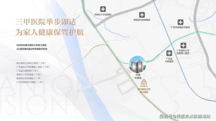项目距离南方医科大学珠江医院仅500米,步行即可到达,该院是集医疗、教学、科研、预防、保健于一体的大型综合性三甲医院,医疗技术精湛、医疗设备先进,能满足各类疾病的诊疗需求。此外,广州医科大学附属第二医院、广州市红十字会医院等多家三甲医院也分布在项目周边,车程均在15分钟以内,为业主提供便捷、高效的医疗服务。