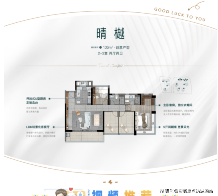 本次主推的89‑130㎡户型,是卓越集团对广州新计容规则的深度实践,实测使用率普遍超过100%。户型设计强调“全南向、大面宽、高拓展”,特别是130㎡的楼王户型,拥有超16米的南向超大面宽,客厅连接约7米长L型景观阳台。89㎡户型则做到了极致的四房两卫,总价门槛极低。全系户型均采用LDKB(客厅、餐厅、厨房、阳台)一体化设计,配合入户花园与270°转角飘窗的极致赠送,实现了“小面积、大空间”的居住革命。