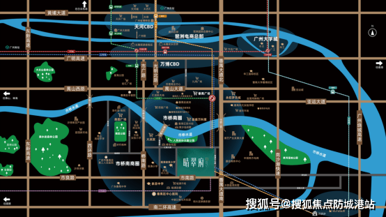项目距离地铁18号线与22号线番禺广场站直线距离仅约600米。18号线作为“湾区最快地铁”,2站可达冼村(珠江新城),22号线更是直连南沙与东莞。这种“双快线”的配置,让业主在30分钟内可覆盖广州核心CBD,通勤效率在广州南部首屈一指。