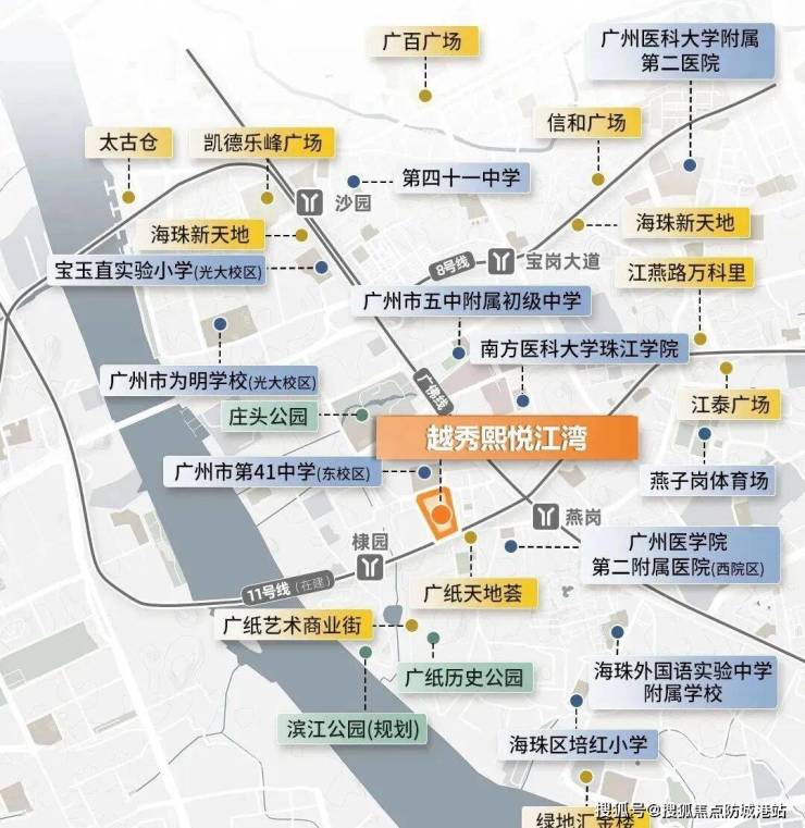 交通上,项目堪称双地铁盘。距离广佛线燕岗站直线约400米,步行约600米,10分钟左右可达;距11号线棣园站直线约250米,步行600米,8分钟左右可到。双地铁均可直达珠金琶。从燕岗站出发,8站达琶洲,3站到沥滘换乘3号线到珠江新城;11号线可便捷通往多个商圈。自驾方面,周边工业大道、昌岗路等干线环绕,去往市区各地方便。无论是公共交通还是自驾,前往珠琶通勤时间基本在30分钟左右,交通优势明显,高峰期地铁出行更便捷。
