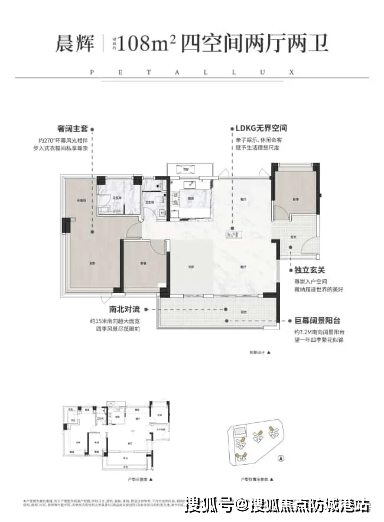 产品涵盖从三房到四房的多元户型,其中建面约75㎡的三房,独立玄关可改储藏间,南北通透,采光充足;建面约95㎡的四房户型,布局紧凑,动静分区合理;而建面约108㎡的四房户型,则配备约15米超大南向面宽、步入式衣帽间、双卫设计,满足高端改善客户的居住需求,兼顾实用性与仪式感。