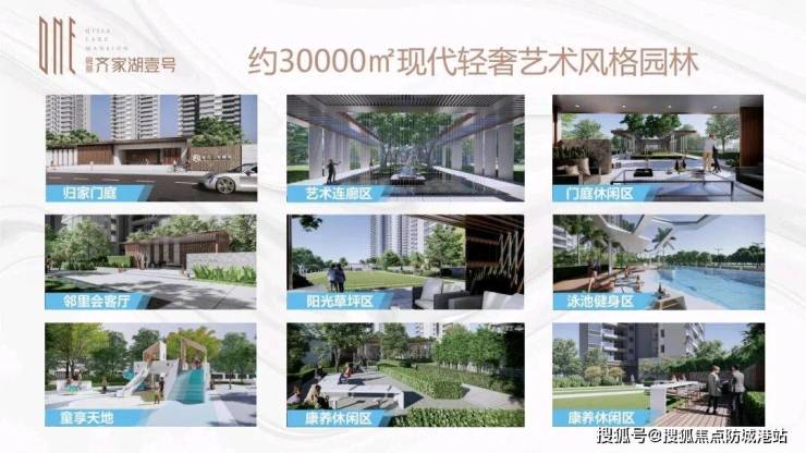 社区内部打造约 3 万㎡现代轻奢艺术风格园林,规划 8 大主题分区,涵盖休闲、运动、亲子等不同功能空间,满足全龄段业主休闲需求。