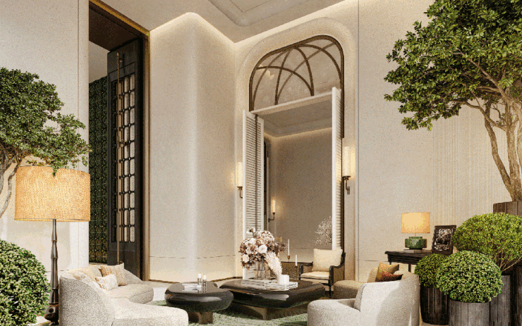万科·理想花地·傲璟以顶豪标准重塑公区美学,深圳香山香格里拉酒店和广州·鹏瑞1号的原设计团队CCD、知名景观事务所TROP,为公区设计执笔,打造四重归家礼序。