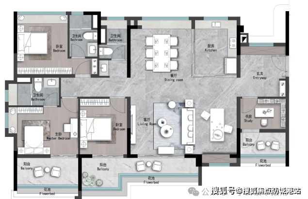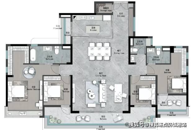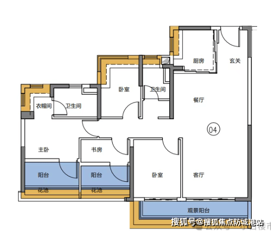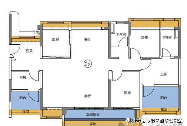 约127㎡奢阔四房:主卧套房带独立衣帽间,功能分区清晰;