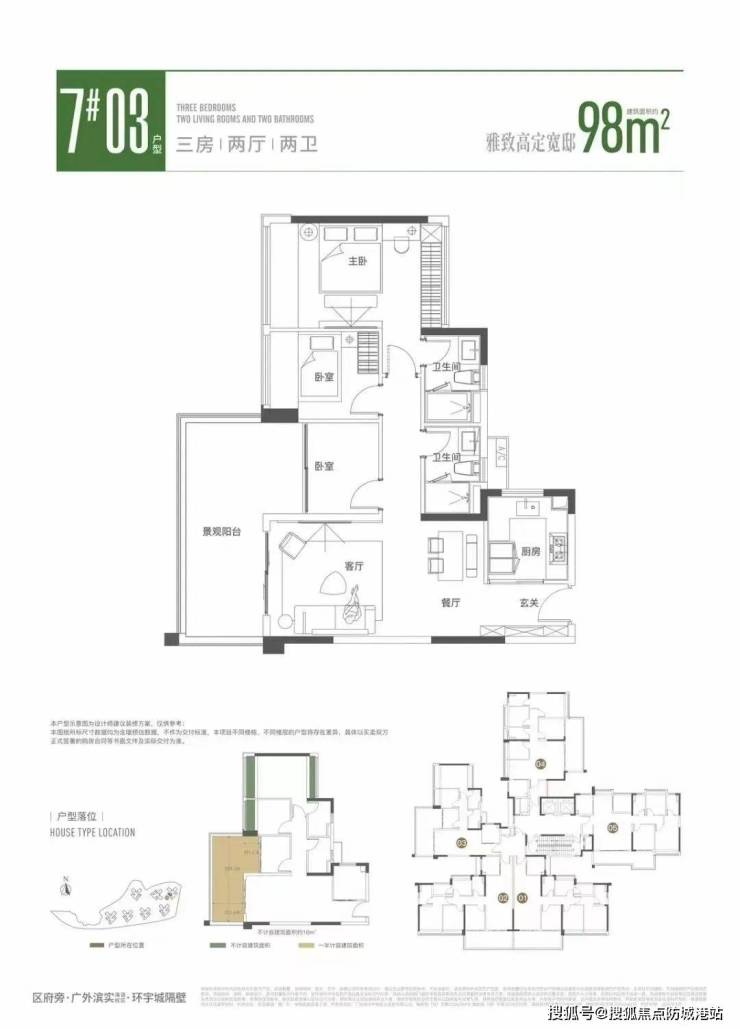 98㎡三房,3.5房设计,约6.5m阳台