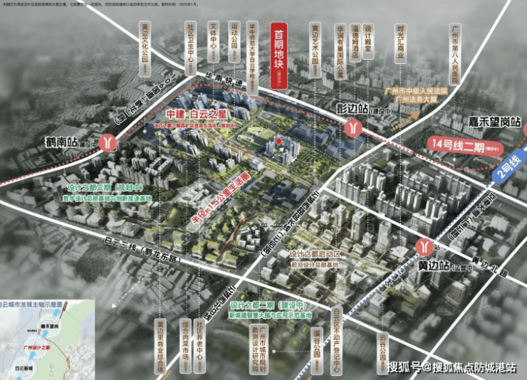 中建星光城的诞生,绝非偶然,而是城市发展脉络与顶级资本眼光完美契合的必然结果。项目矗立于广州市白云区西部,白云湖数字科技城西湖片区的核心腹地,这里被誉为广州北部的“数字引擎”与“产业高地”。根据《白云湖数字科技城建设总体方案》,该区域将分三个阶段进行建设:2019-2023年起步发展,2024-2026年提速发展,2027-2030年跨越发展。目前,区域正处于提速发展的关键阶段,预计未来将容纳人口总量28万人,就业人口41万人。中建星光城恰好占据了这一战略要地的黄金点位,其周边不仅汇聚了新兴产业、人工智能、智能终端产业等高端产业集群,更拥有约3000亩的白云湖公园,形成了“左手产业,右手湖景”的绝版配置。西区主打新兴产业跟人工智能,依托地铁8号线,将成为连接广州主城区与北部生态区的关键枢纽。
