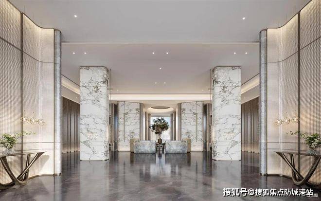 答:约1600平方米双会所体系,包含恒温泳池、健身空间及多功能社交区域。大堂与地下归家空间采用高规格天然石材与定制化设计,强调仪式感与品质感。