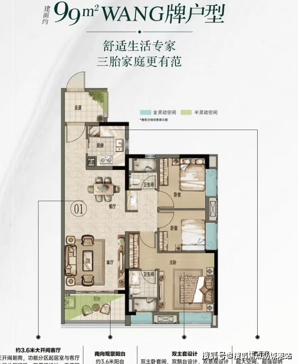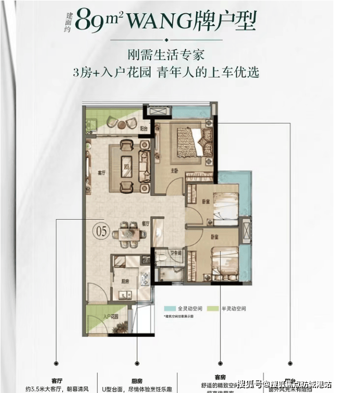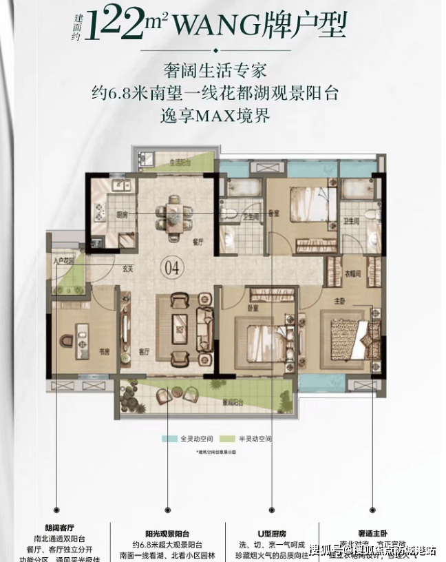 项目提供多种户型选择,面积从89㎡至122㎡不等,涵盖三房至四房,层高达到3米。所有户型均采用绿色智慧家高标准智能精装,注重空间利用效率与居住舒适度,两梯四户或两梯六户的设计也提升了住户的私密性。