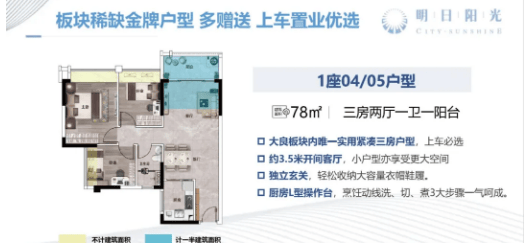 明日阳光居目前主推78-118㎡刚需户型,涵盖三房、(3+1)房、(4+1)房等多种户型,户型设计合理、空间利用率高,采光通风佳,贴合不同刚需家庭的居住需求,简洁实用、性价比突出。