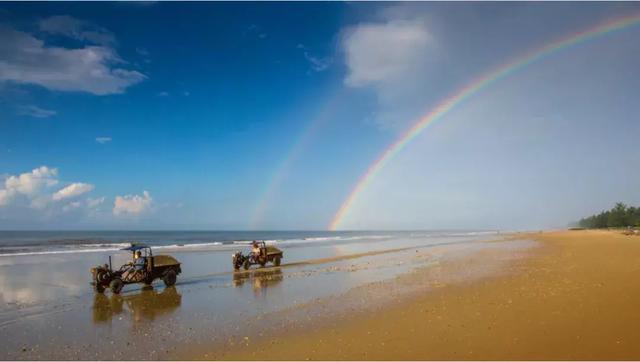 金滩全长10公里,宽阔坦荡,沙质细柔金黄。绿岛、长滩、碧海、阳光,构成京岛如画景色。这里是天然的海滨浴场,滨海旅游度假胜地,自治区级风景名胜区。