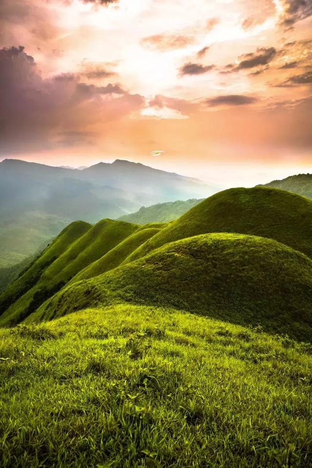 十万大山国家森林公园里有很多适合搭帐篷的区域,非常适合露营。在这里一宿,日出时分,草地上的水蒸发后受气流影响形成云海,从山顶上望过去,云雾就像河流一样在山间流淌,如梦似幻。每一个时刻,你眼中的世界都是少有的风景。