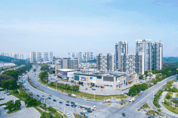 镇龙TOD超级交通枢纽中心旁,4纵6横的交通路网贯穿全城,使居民出行更加便利高效。