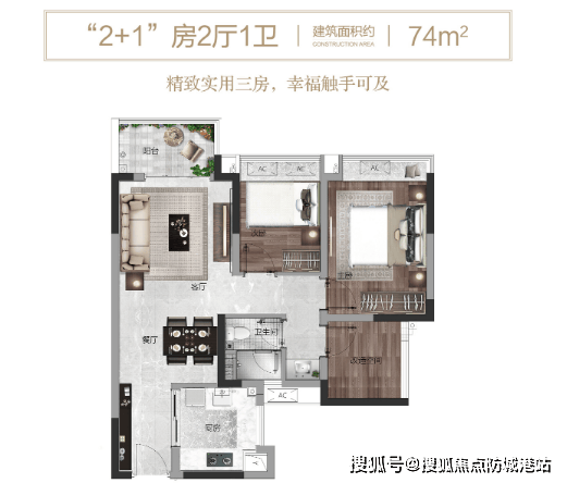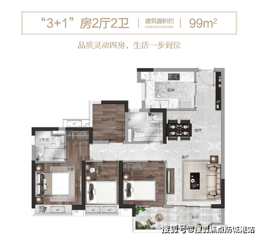 项目于2018年年底拿地,所提供的“粤府系”高标建筑装修,面积较大且每种户型多送一个房间。