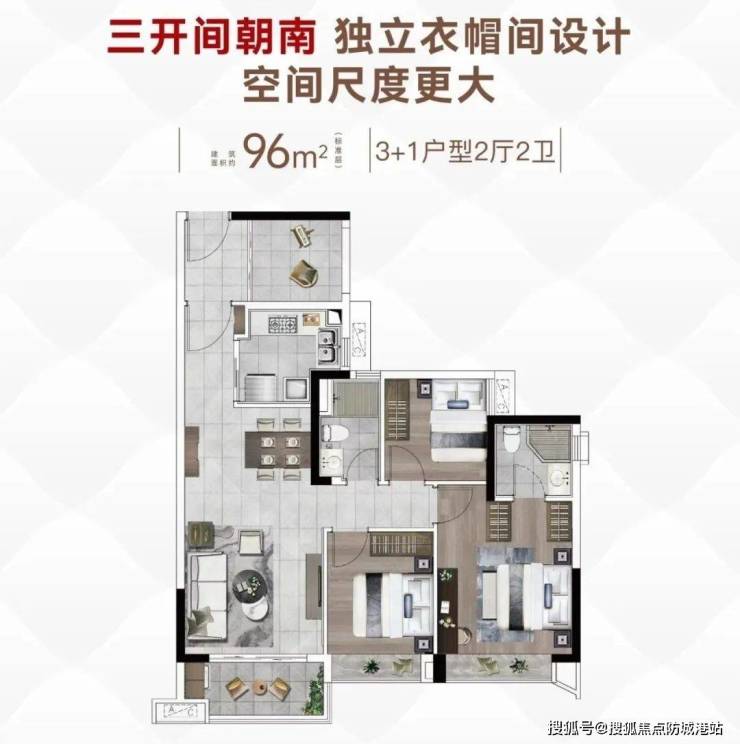 城投珠江天河壹品提供多种户型供购房者选择,从紧凑实用的96㎡三房到宽敞舒适的143㎡五房不等。每种户型都充分考虑到了空间利用率及家庭成员间的互动需求,尤其是126㎡四房双主套设计,更是为追求高品质生活的家庭量身打造的理想之选。