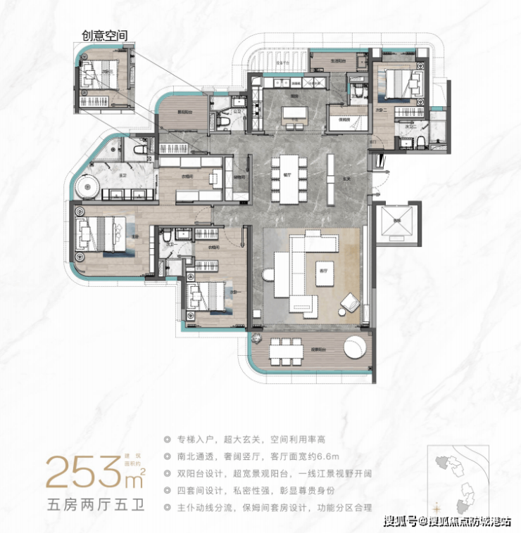 广州滨江上都·璇湾为满足不同购房需求,提供了多样化的户型选择,户型设计注重功能性与舒适性的结合。主力户型包括建面约109-253㎡的一线瞰江华宅,专为高端客户群体定制。除此之外,项目还特别推出了建面约350㎡的临江大平层公馆,旨在满足大家庭或高端圈层对居住空间的需求。