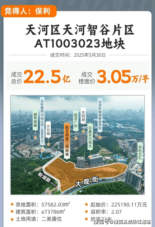 保利辰园·湖境位于天河智谷片区AT1003023地块,紧邻世界大观、保利天汇东侧及缦云广州北侧,属天河东稀缺生态改善板块。项目占地约5.76万平方米,总建面约7.38万平方米,容积率仅2.07,规划9栋住宅(含6栋23层塔楼 + 3栋17层板楼),打造真正意义上的低密小高层社区。