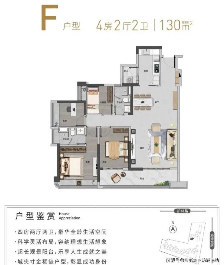 130㎡左右四房:空间尺度开阔,可灵活改造多功能空间,满足二胎或三代同堂需求。