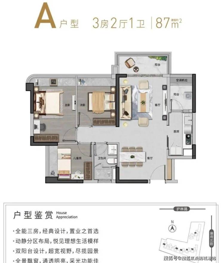 105–115㎡三至四房:南北通透,主卧套房设计,提升居住私密性;
