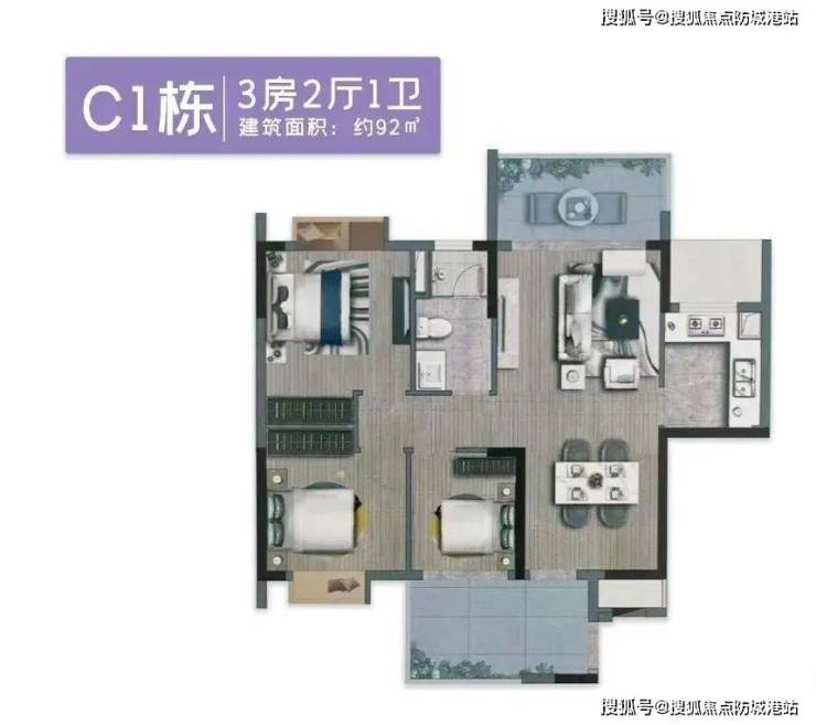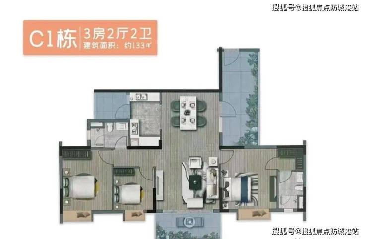 户型亮点:主卧配备 270°飘窗,直面中心园林景观;餐客一体设计,空间利用率达 92%。