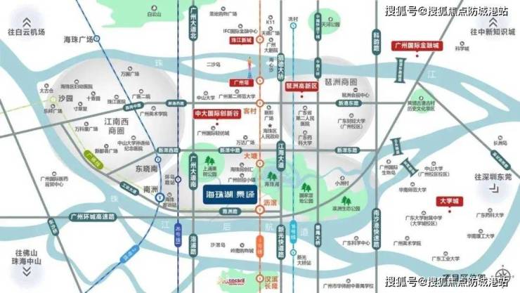 海珠湖湿地公园:距离项目约1公里,中高层可南眺珠江江景,形成“一江一湖”双景观带。