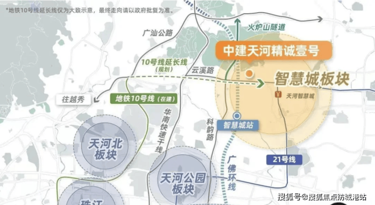 中建天河精诚壹号选址于天河东部华观路核心,地处珠江新城、金融城、琶洲三大CBD构成的城市“金三角”内圈,半径六公里内通达广州最重要的商务枢纽。该区域是广州市政府重点规划的科技创新走廊——天河智慧城的核心组成部分,目前已吸引超过两千五百家创新型企业进驻,包括多家知名科技、文化、游戏等产业头部企业。交通体系持续升级,现有21号线运营中,10号线延长段设站于项目北侧约六百米,未来还规划29号线和30号线交汇。多线轨道加持、主干道高效串联,构成立体化交通格局,项目交通便利性与未来通达力有着极强上升潜力。