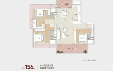 主力在售的108平方米四房,四开间朝南,三间卧室全部面向南侧,主卧还独占东南角位,带大飘窗和独立卫浴。98平方米户型则通过灵活隔断可改造成3+1房,适合三代同住或未来有二胎计划的家庭。最特别的是156平方米楼王单位,南北双阳台+双套房设计,拓展后能实现4+1房3卫,在寸土寸金的老西关相当少见。