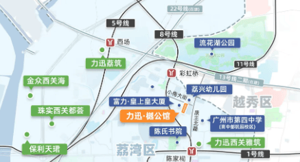 项目距离地铁8号线与11号线交汇的彩虹桥站约500米,步行不到6分钟。从这里出发,无论是去珠江新城还是越秀核心区,基本一次换乘就能直达。加上13号线二期未来通车,通勤选择会更灵活。对于依赖地铁出行的家庭,这样的接驳效率在老荔湾实属便利。