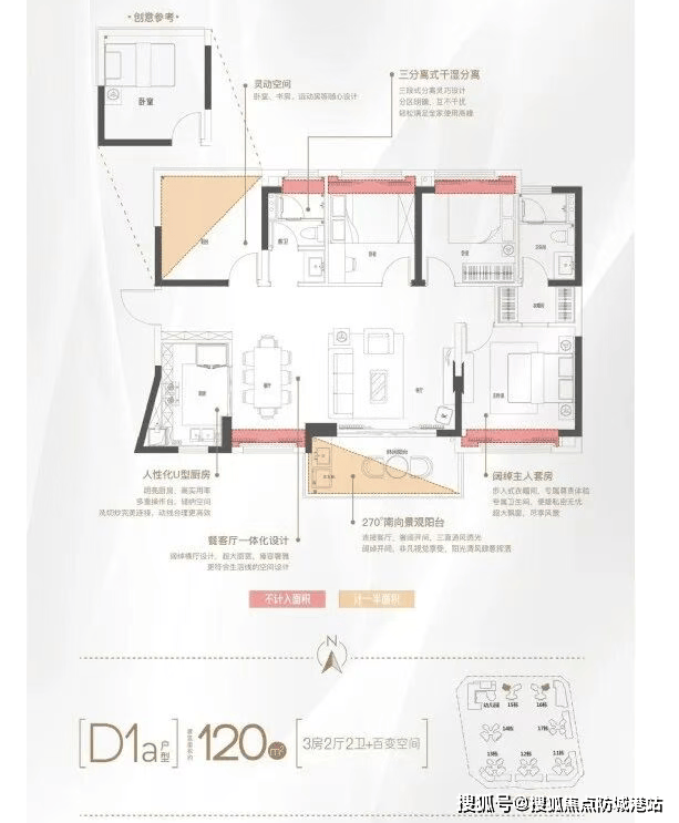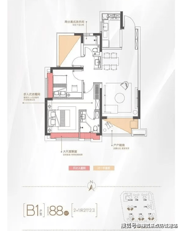 7. 在售房源及户型设计:88-128㎡精装三四房,得房率超85%