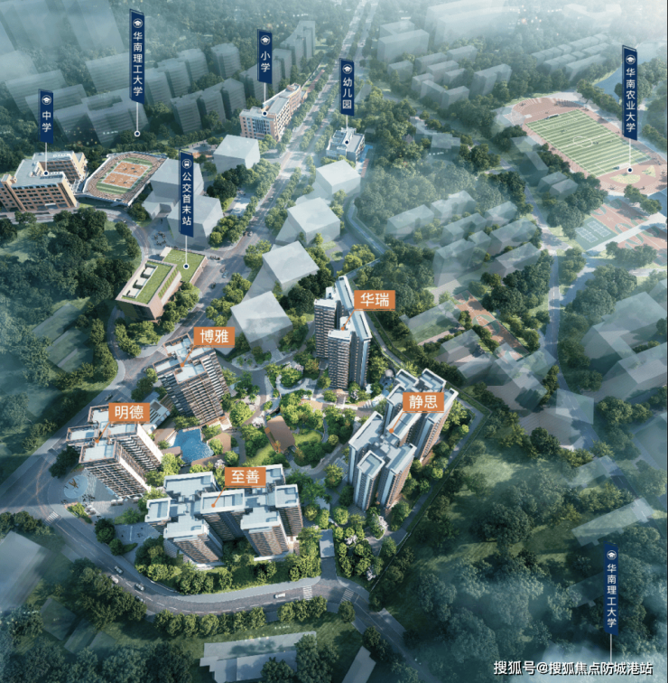 万亩生态绿肺: 项目被华南理工大学、华南农业大学两大高校校园环绕,坐拥超过11000亩的天然城市绿肺与人文景观。步行即可融入校园,享受运动场、湖泊、林荫道,日均PM2.5值常年低于广州市中心平均值。(数据参考:广州市生态环境局2025年各监测点年报)