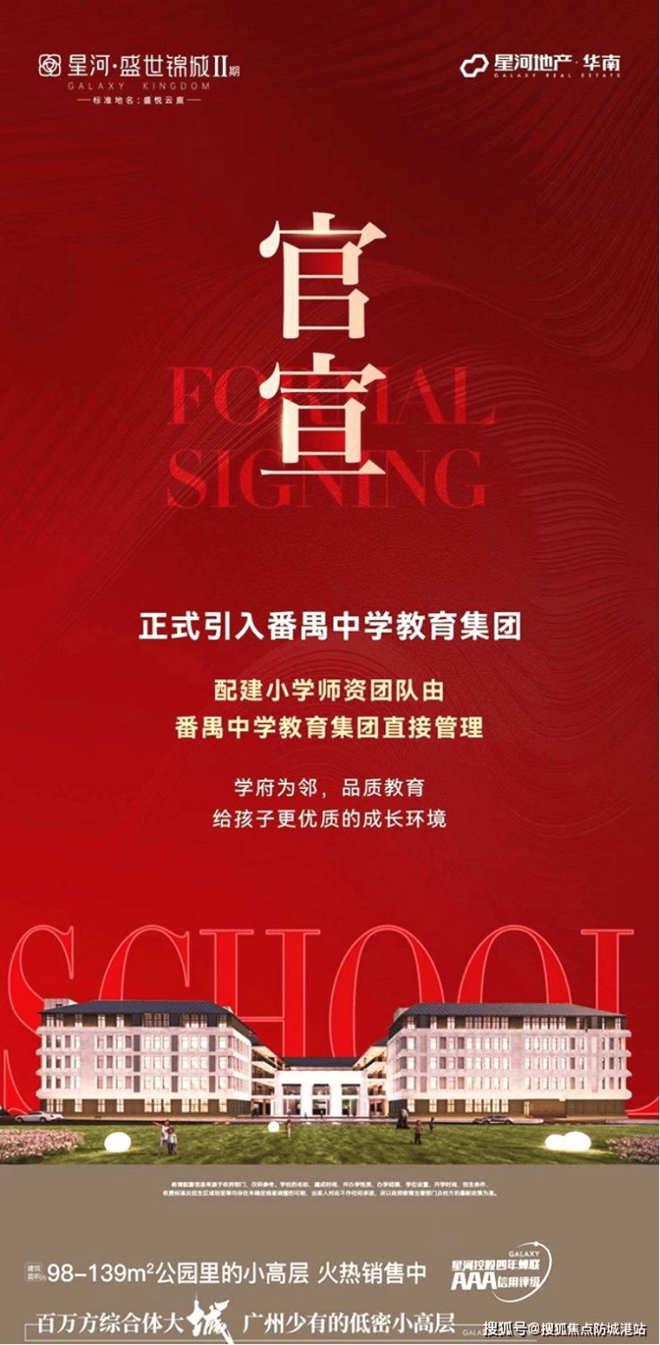 对家长来说,教育配套是刚需。星河盛世锦城直接配建了3所学校:1所36班小学(广东番禺中学教育集团旗下)、1所18班幼儿园和1所12班幼儿园,均与住宅同步交付。业主子女从幼儿园到小学,不用跨区择校,出了小区门就是校门,接送省心。项目周边还有中山大学、华南理工大学等十余所高校,学术氛围拉满,孩子从小泡在“书香里”,成长环境没得挑。
