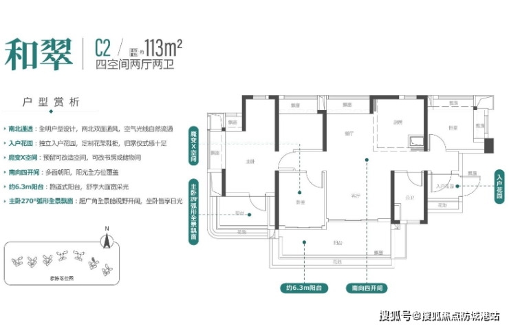 113平方米四房两厅两卫:空间宽敞明亮,适合大家庭或需要更多房间的家庭。