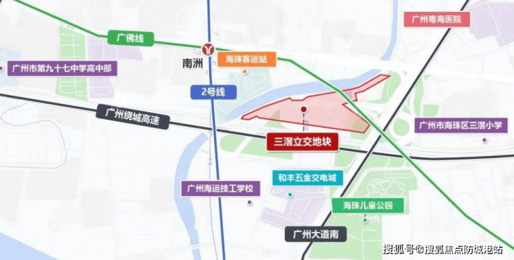 中交天翠紧邻广州地铁2号线和广佛线交汇的南洲站,直线距离仅约400米,出行极为便利。此外,项目周边还有广州大道和广州绕城高速,交通网络发达。尽管项目被多条主干道包围,可能会受到一定的噪音影响,但开发商已采取多项降噪措施以提升居住舒适度。