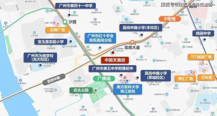 中旅天宸府的位置就在其中,它处于海珠老城区昌岗中路与宝岗大道交汇处。