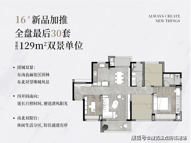 建面约129㎡ 四房两厅二卫:空间布局合理,满足刚改家庭需求。