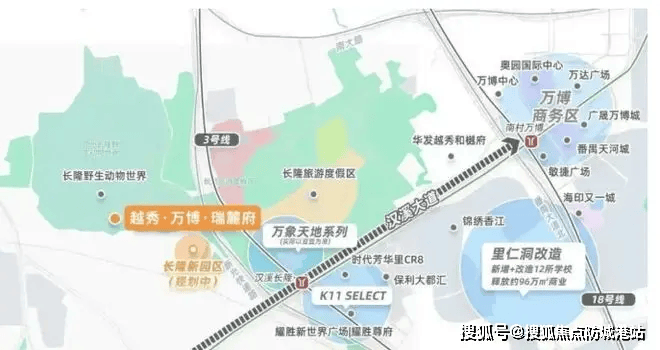 项目位于番禺万博商务区西翼,与长隆旅游度假区、汉溪长隆商圈形成“黄金三角”,是广州南拓战略的核心节点。