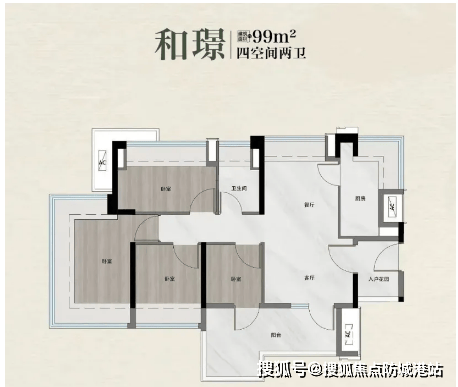 ✅ 99㎡四房两厅两卫|总价287–300万|爆款成长型户型