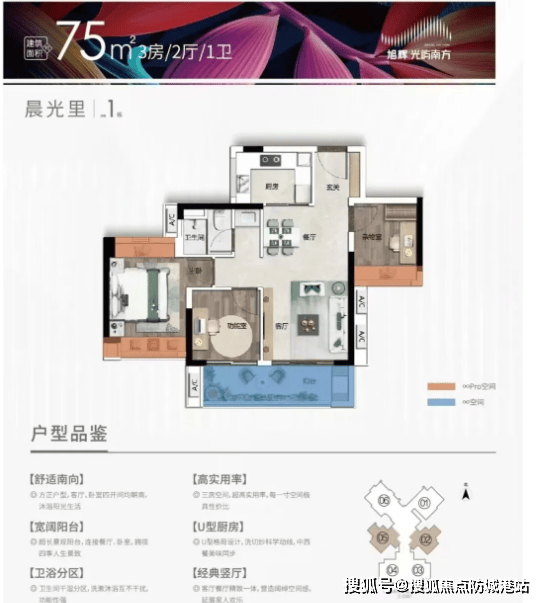 第四,户型设计优质,实用性强。所有户型均采用全朝南开间设计,动静分离,方正实用,搭配大尺度双联阳台,采光通风效果好;户型选择丰富,可满足不同刚需家庭的需求;房屋使用率高达85%,实际居住空间宽敞。