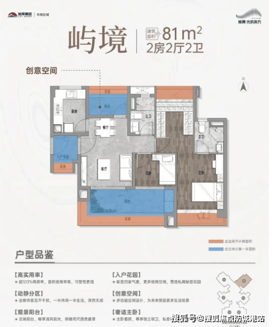 项目户型的特色设计还包括全明空间,每个房间均有窗户,保证了室内光线充足;入户玄关设计,增加了收纳空间,同时提升了户型的私密性;大尺度双联阳台不仅提升了采光通风效果,还为业主提供了休闲、晾晒、观景的多功能空间。