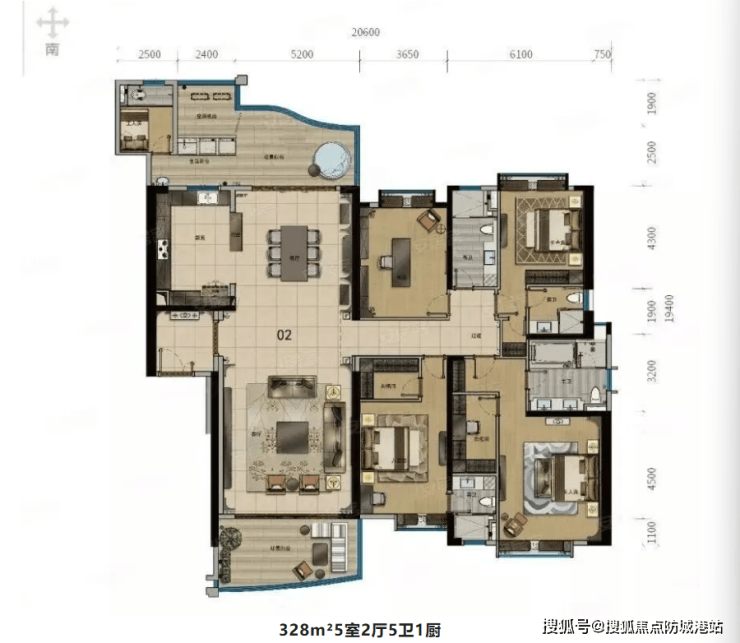 328㎡ 宽景平层大宅(5 室 2 厅 5 卫):经典五房设计,约 4 米层高,约 6.7 米超大开间客餐厅,连接南北双阳台,通透采光,山景尽收眼底。双套间设计,主卧配独立衣帽间与观景卫浴,满足大家族居住需求。