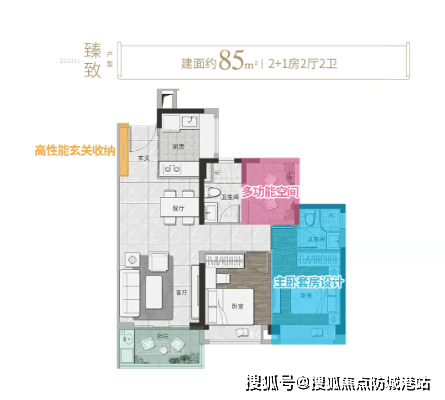在售户型涵盖建面约85平方米的3房2卫、约95平方米的3+1房以及约109平方米的4房,所有户型均采用了人性化交付标准,空间利用率高,能够达到约95%的使用效率。房间布局合理,功能齐全,无论是小家庭还是大家庭都能找到合适的居住空间。