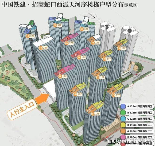 小区总占地接近7.7万方,建筑面积14.2万方,容积率控制在3.0,属于天河少有的低容积率社区。总户数744户,规划了16栋住宅,层高从17层小高层板楼到32层塔楼都有覆盖,整体以板楼为主,居住舒适度有保障。车位比接近1:1.7,停车压力较小,实用率普遍在100%-110%之间,空间利用率很高。