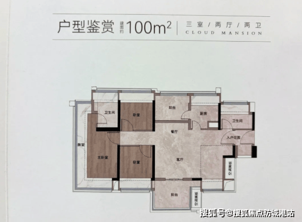 建面约 100㎡三房双卫户型:打造双阳台设计,兼顾生活与观景需求;入户花园定制实用收纳区,解决归家杂物存放痛点;卧室集中布局,实现休息区与活动区完全分离,家人生活互不干扰,小面积也能拥有大舒适,是年轻改善家庭的优选。