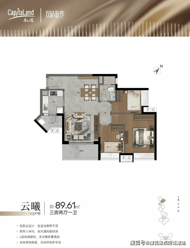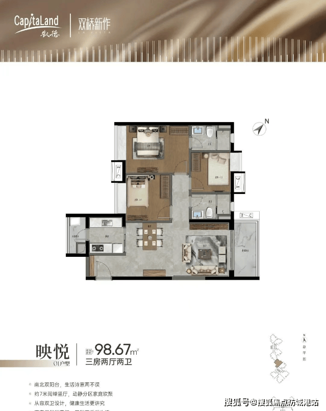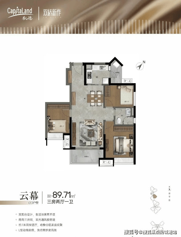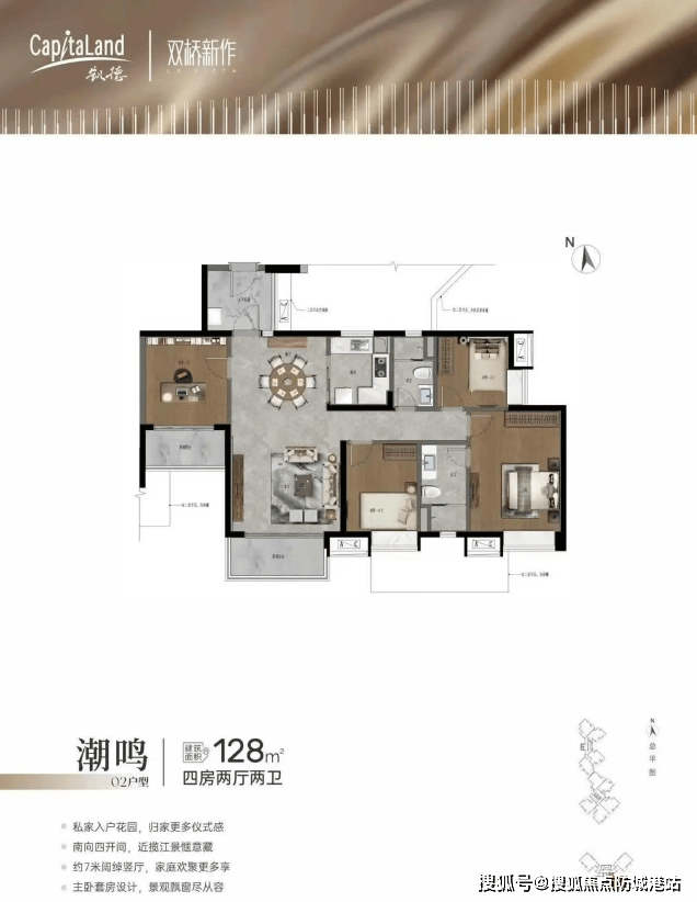 凯德·双桥新作提供约89-128㎡三至四房的户型选择,满足不同家庭结构的需求。每种户型设计均注重空间利用效率和居住舒适度,旨在为住户提供最佳的生活体验。