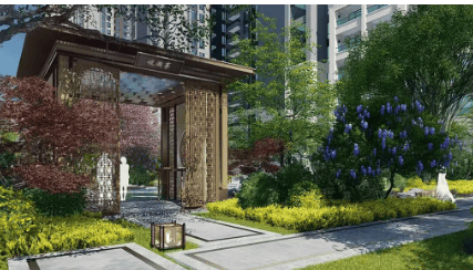 社区园林:项目以岭南文化为核心,打造了一轴三园四院的独特景观,包括石园、花园和水园。参考清晖园的设计理念,将顺德的自然美景浓缩于社区之中,营造出一种诗意的人居环境。