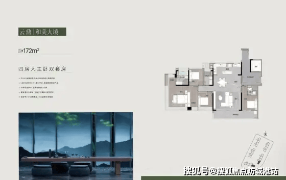 项目主推 128-172㎡专梯专户纯四房,所有户型均经官方实测核验,空间舒适度与实用性兼具: