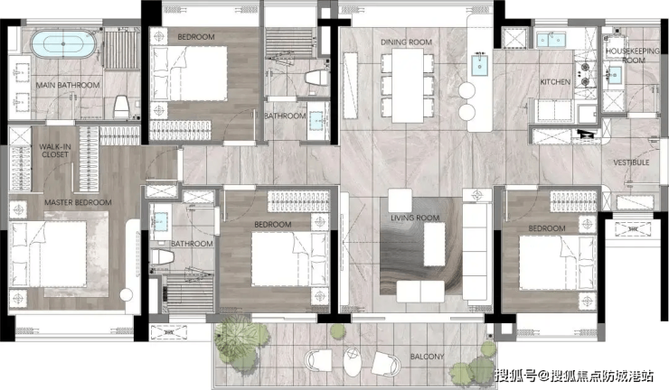 主卧套房设计:主卧配备独立卫生间、衣帽间、观景飘窗,部分主卧面积超 30㎡,打造私密舒适的居住体验;