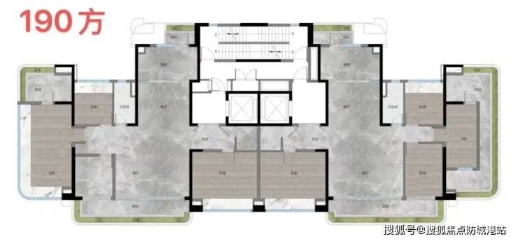 建面 190㎡的四房三卫,2梯2户,独立梯厅,双主套次套房也做到了明卫,9 米长主景观阳台,5.7 米宽客厅,尽显奢华大气。