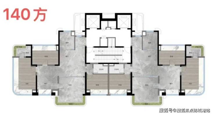 建面 140㎡的四房三卫,同样2梯2户,独立梯厅空间,南北对流双阳台,4.9 米面宽大客厅,满足大家庭的居住需求。